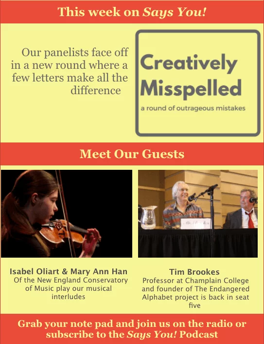 In last week’s episode, from Colchester, VT, we played a round called “Great Name for a Rock Band.” It turns out our a folk duo from Chicago was on the same wavelength.