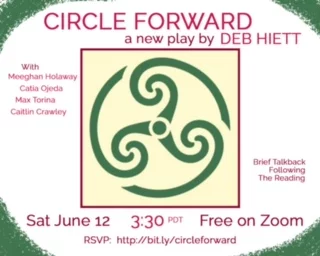 Deb Hiett, a Says You! radio regular, has authored a new play and put together an amazing cast, as part of the “First Peek” series featuring new plays (all works in progress). Deb’s play “Circle Forward” will have its very first public reading on Zoom on Saturday June 12 at 3:30 PDT (ending @4:45pm).