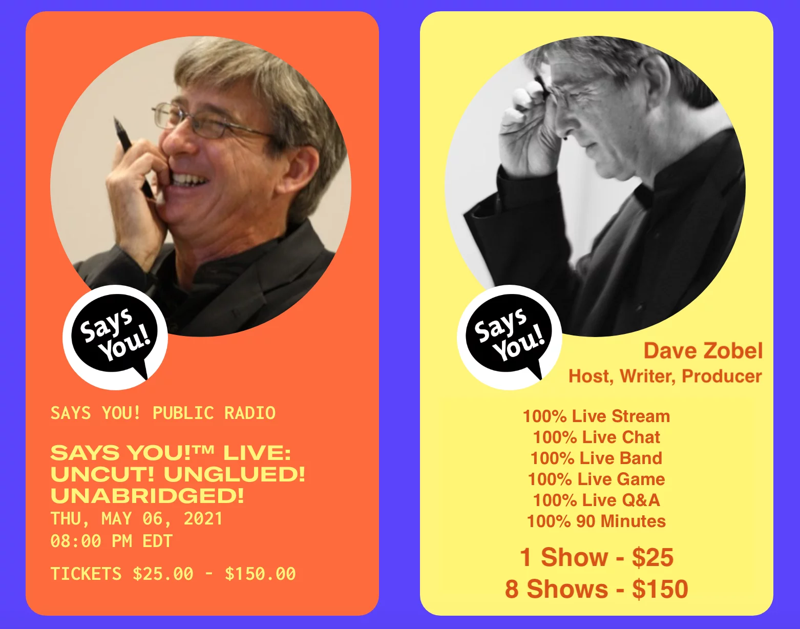 Head on over to https://www.saysyou.net/tickets/ to get your tickets for details on our new Stream Series!